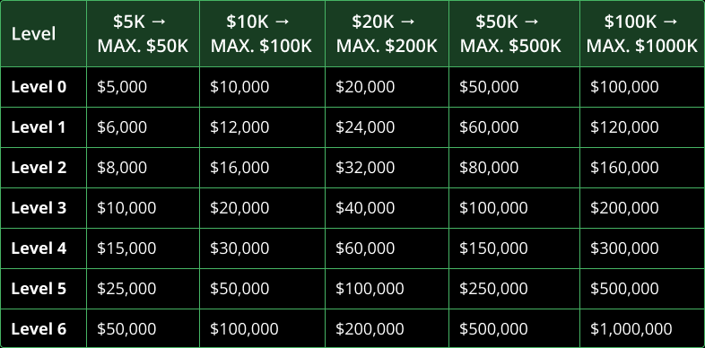 - Po splnění všech výše uvedených podmínek se trader kvalifikuje pro škálování účtu